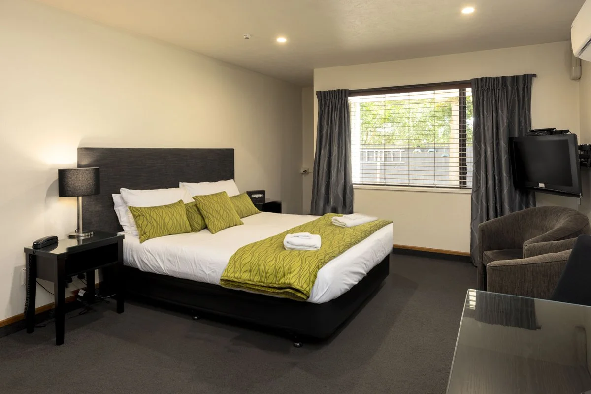 The Corporate Studio's are our newest units designed for your comfort while staying in Christchurch, They feature a Super King bed, spacious tile and glass ensuite bathroom, kitchenette, underfloor heating in the bathroom, along with heat pump heating and cooling.